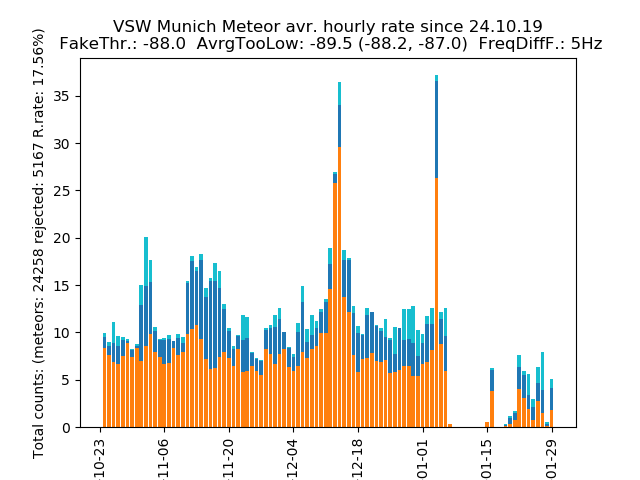 Durch automatisierte Skripte und Algorithmen erstellen wir "live" Auswertungen von Häufigkeitsverteilungen von Sternschnuppen - so können wir Sternschnuppenströme wie die Perseiden, Geminiden und Quadrantiden experimentell nachweisen, messen und in Diagrammen visualisieren.